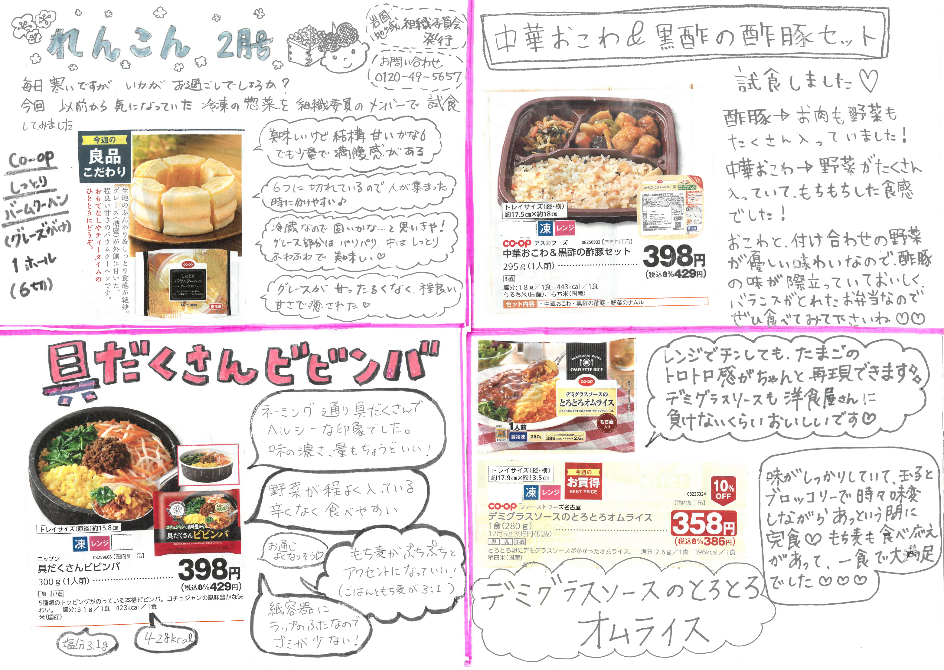 2022.02.22 岩国地域ニュース 「れんこん」 組合員活動 岩国地域組織委員会が毎月発行しているニュース「れんこん」の2月号です。今回は「カタログでよく見るけどどんな商品なのか知りたい」という声をよくいただく冷凍のお弁当などを試食した感想を掲載しました。ぜひご覧になってください。 前のニュースへ 次のニュースへ ニュース一覧に戻る