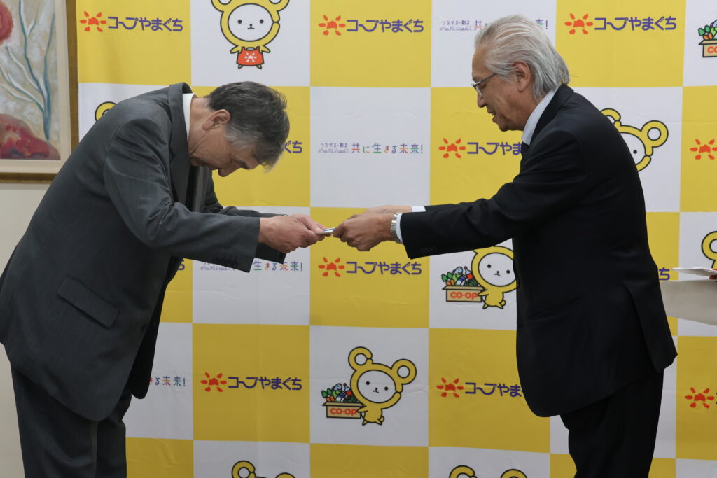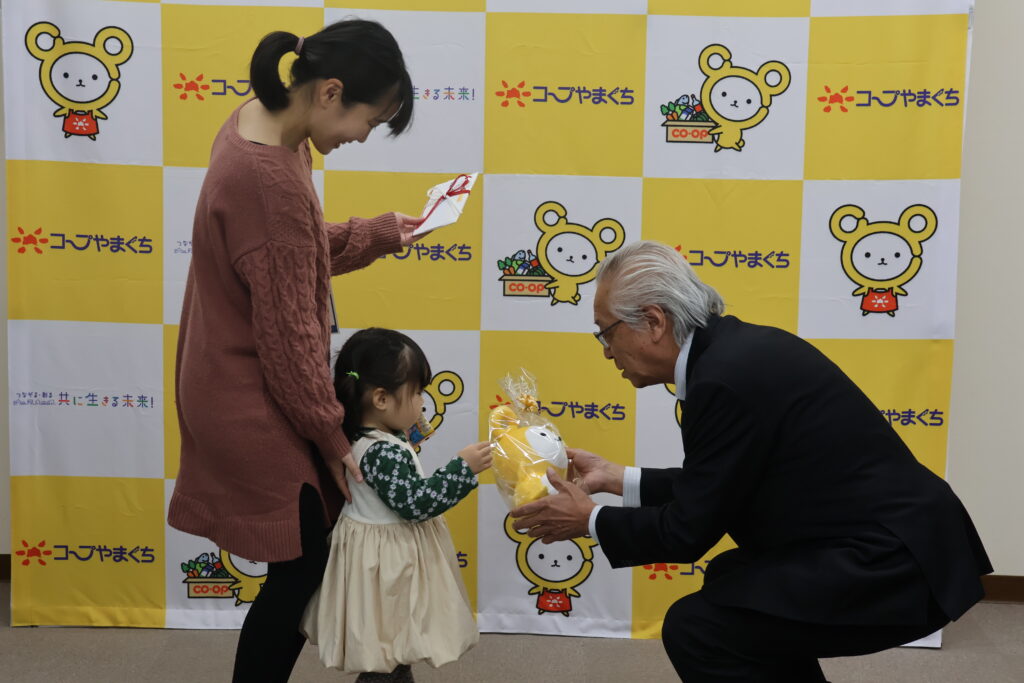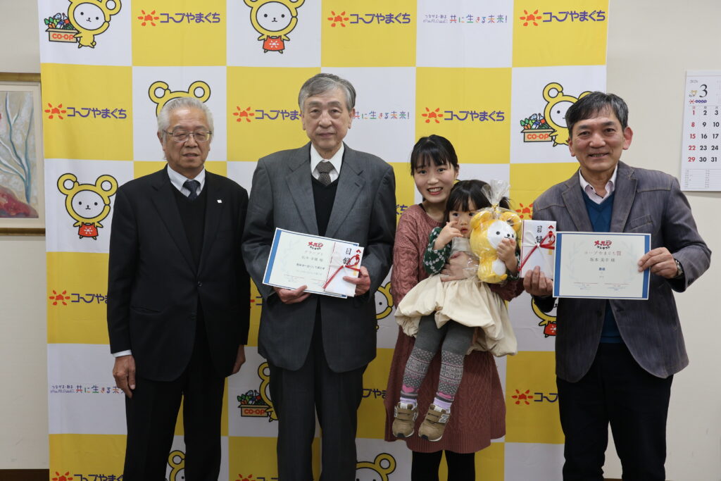 その中で、見事グランプリ・コープやまぐち賞に受賞されたお2人に来訪いただき、表彰状と目録を授与いたしました。
