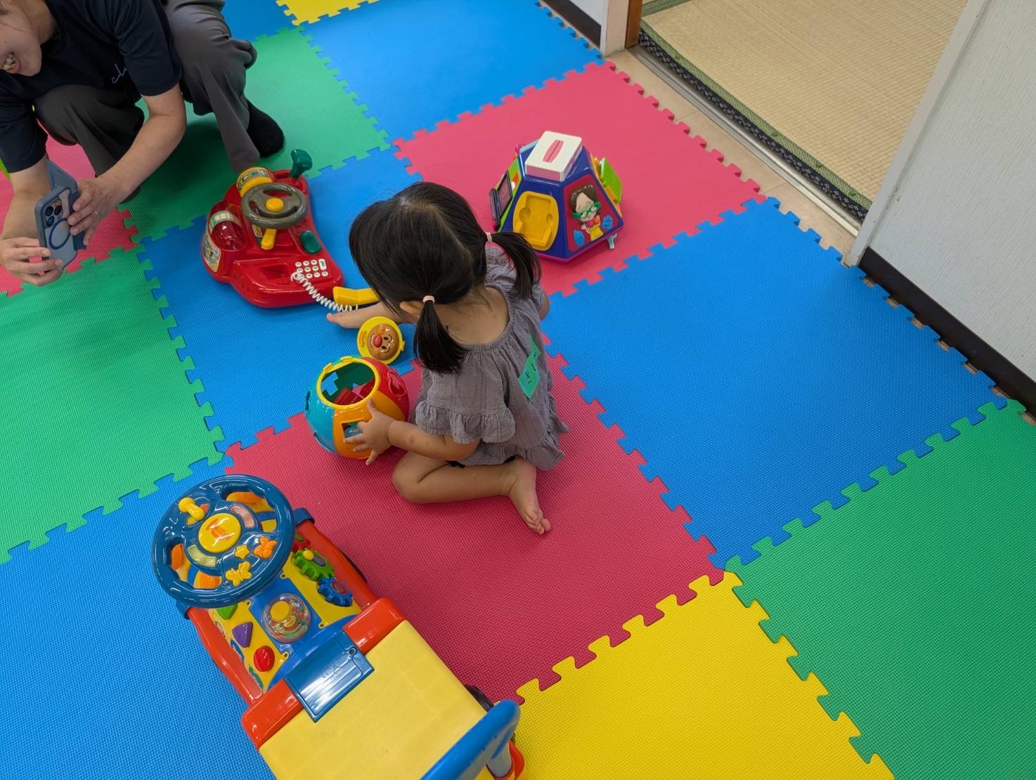 子どもの遊ぶ姿を見ながら、ママさんと話したり、先生に離乳食のことを学んだりとても有意義な時間を過ごせています。プレイマットが敷いてあり、安心安全な空間で過ごすことができて嬉しいです。(ペンネーム ミポリンさん)