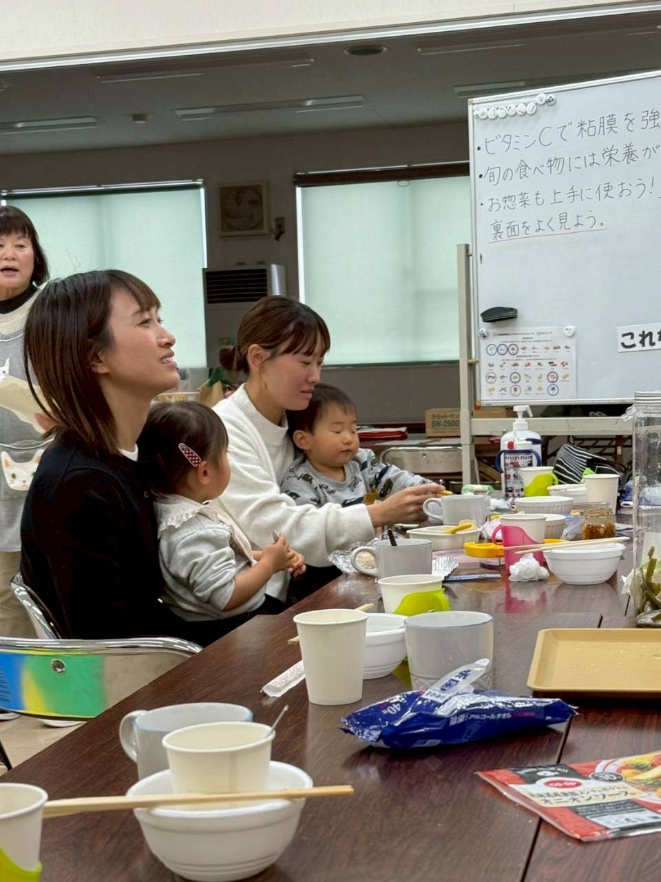 初めて参加させていただき、子どもが遊べて良い気分転換になりました。先輩ママさんや先生のお話がとても参考になりました。先生に教えていただいたパック調理やおだしも家で実践したいです。 ペンネーム( りんママさん )