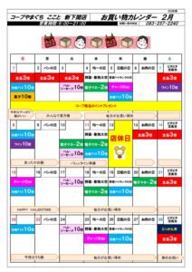 26年2月 お買物カレンダー新下関