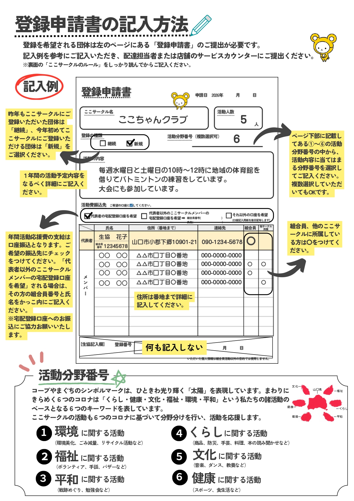 ここサークルに登録し年に1回活動を報告することで、コープやまぐちから年間活動応援費を受け取ることができます。